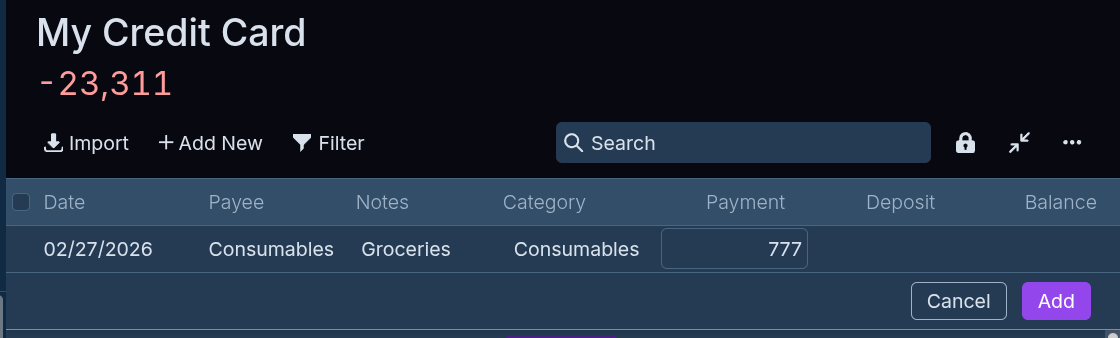When I make a payment and I am at my computer, for example when ordering something from Amazon etc, I record the expense immediately after making the transaction. Since I am already on my laptop, all I need to do is switch over to my pinned “Actual Budget” tab (it used to be a Google spreadsheet tab earlier) and write down the expense.