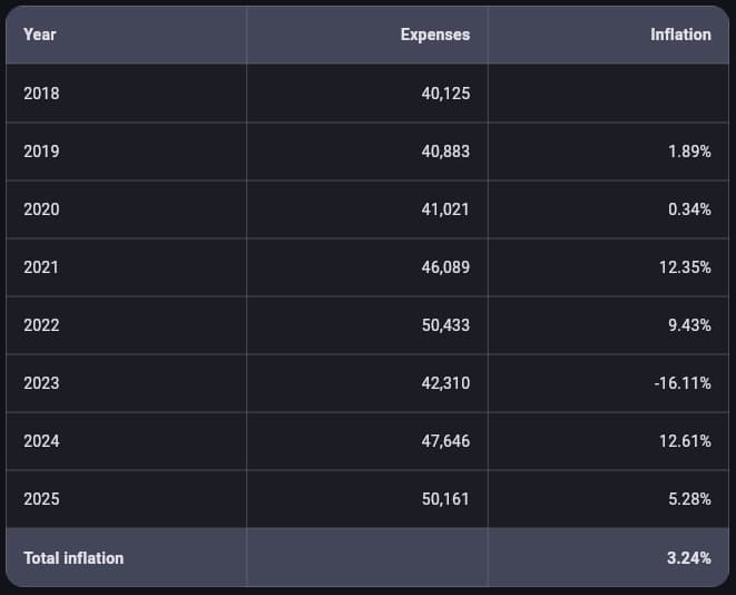 Compared to previous year, our expenses have gone up by 5%. The overall inflation from start of 2018 to end of 2025 is about 3.24%. I have expected my post retirement inflation to be between 4% and 8% and as of now it is closer to the lower side.